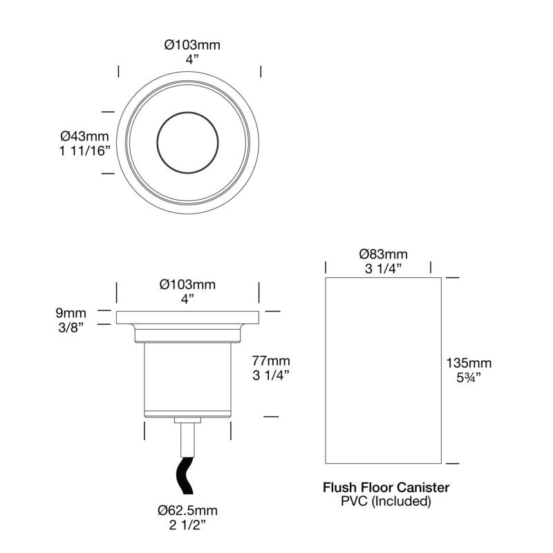 The Flush Floor Light has been designed to mount flush with the level of a pathway, hotel floor or building foyer. The flush fit lens stops water pooling and depositing dirt on the lens. There is no lip to trip over and the luminaire can be driven over or walked upon without being damaged. The canister is included for easy installation.