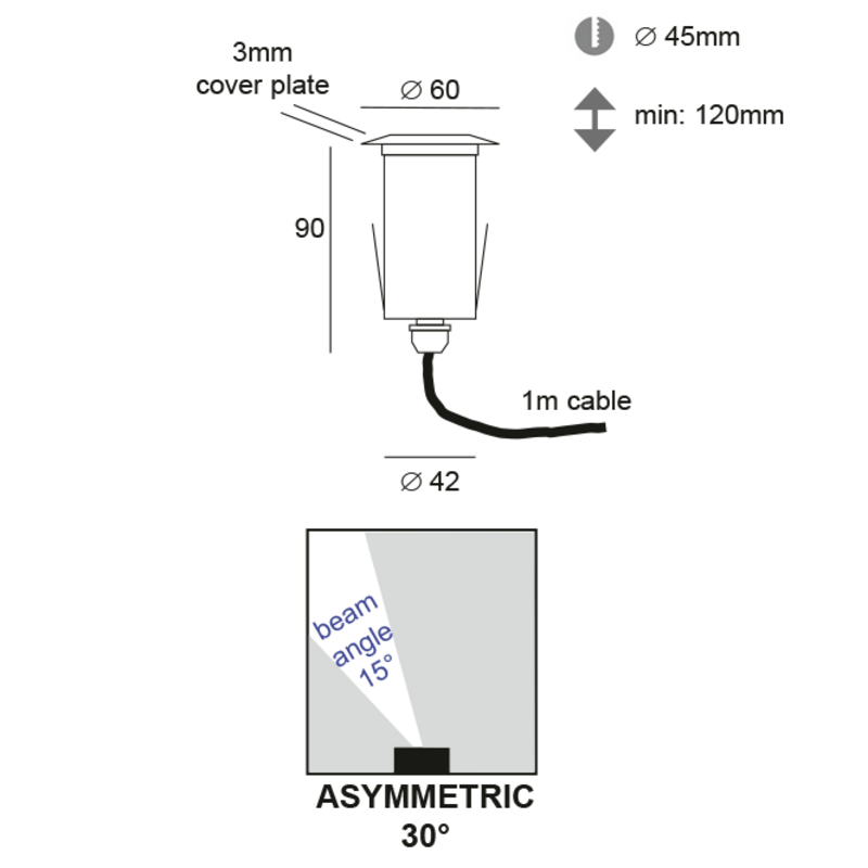 Product Description: IK06/IP68/3.2W/2700k 0r 3000k 0r 4000k/CRI>90