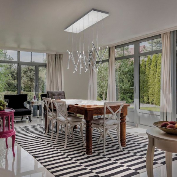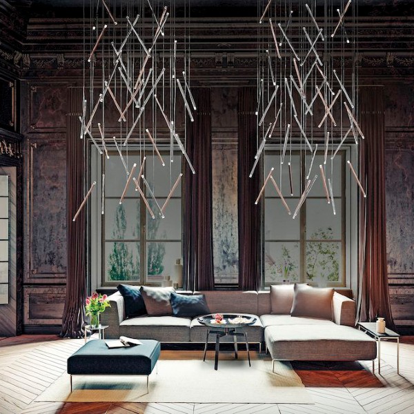 Precious pins suspended from a thin cable, like magic lights floating in the space. A–Tube Nano Duo is an offshoot of A–Tube Nano with an LED light source on both ends of its thin metal body. A lightweight and linear lamp available in six finishes, including the new Terra, which allows to create evocative and playful cluster compositions.
