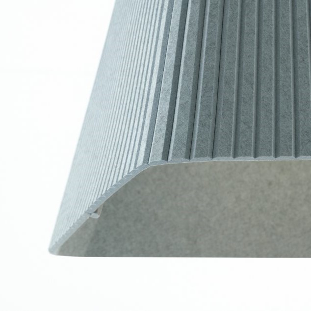 Acoustic Alpha is an oversized trapeze-shaped, highly effective office lamp made of sound-absorbing material from recycled PET bottles. The lamp design stands out with clean lines and a minimalist design.