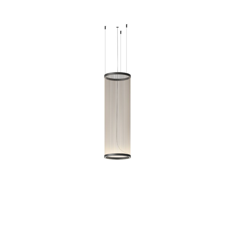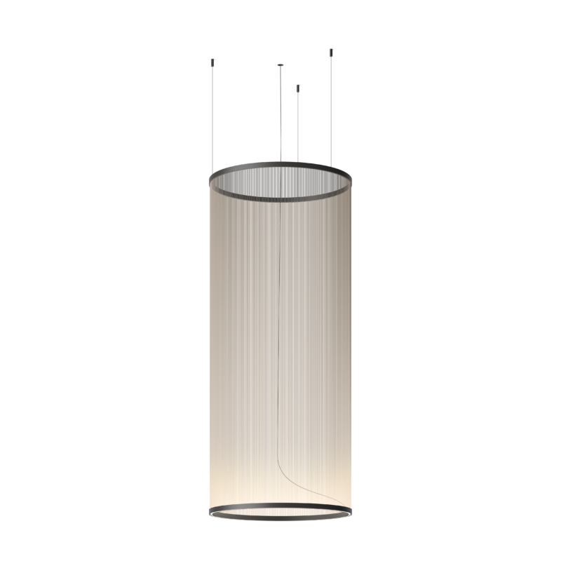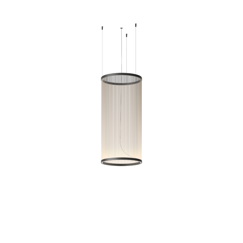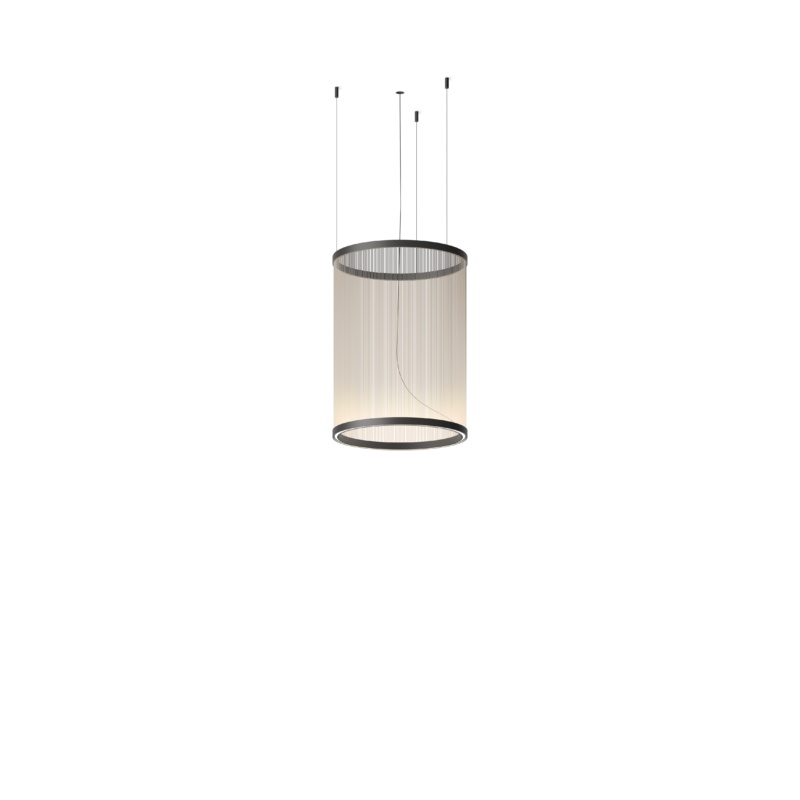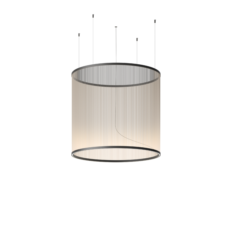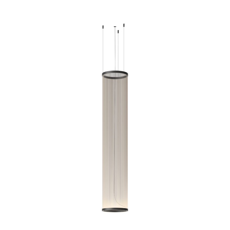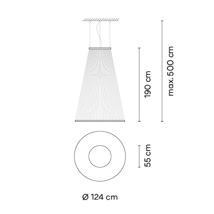The large-scale conical silhouette hanging Array lamp wraps around the space rather than dominating it thanks to the spacious spread of the filaments creating a translucency