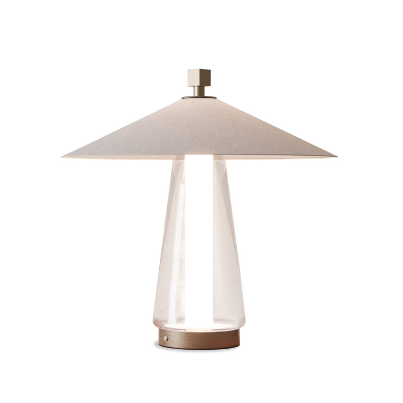 A product range characterised by a clean and linear form, yet with a strong personality, Asia’s lampshade is inspired by the pointed hats of Chinese rice pickers, and the material combination of fabric, glass and metal is a further key feature of the collection.