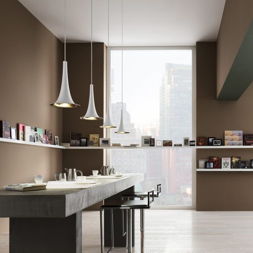 The delicacy of the glass expresses a pure but gently refined light. With its clean and essential design, Spillray is able to illuminate any space with grace and kindness.The Spillray collection is composed by pendant lamps, ceiling lamps and wall lamps made of glass available in crystal, red and grey, with chrome-plated metal frame.‎ The hanging lamps, with one, three, six, ten and twelve lights are also available in metallic bronze.‎