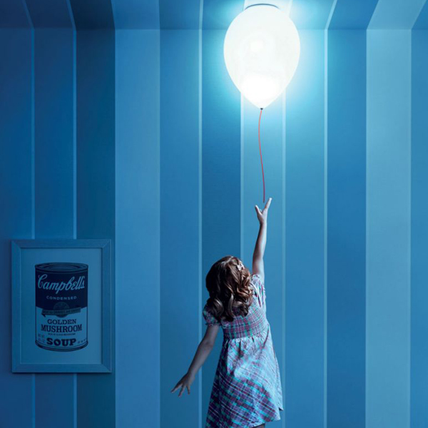 Appearing to float effortlessly on wall or from the ceiling, the shade of translucent, satinated polyethylene provides a uniform glowing light.