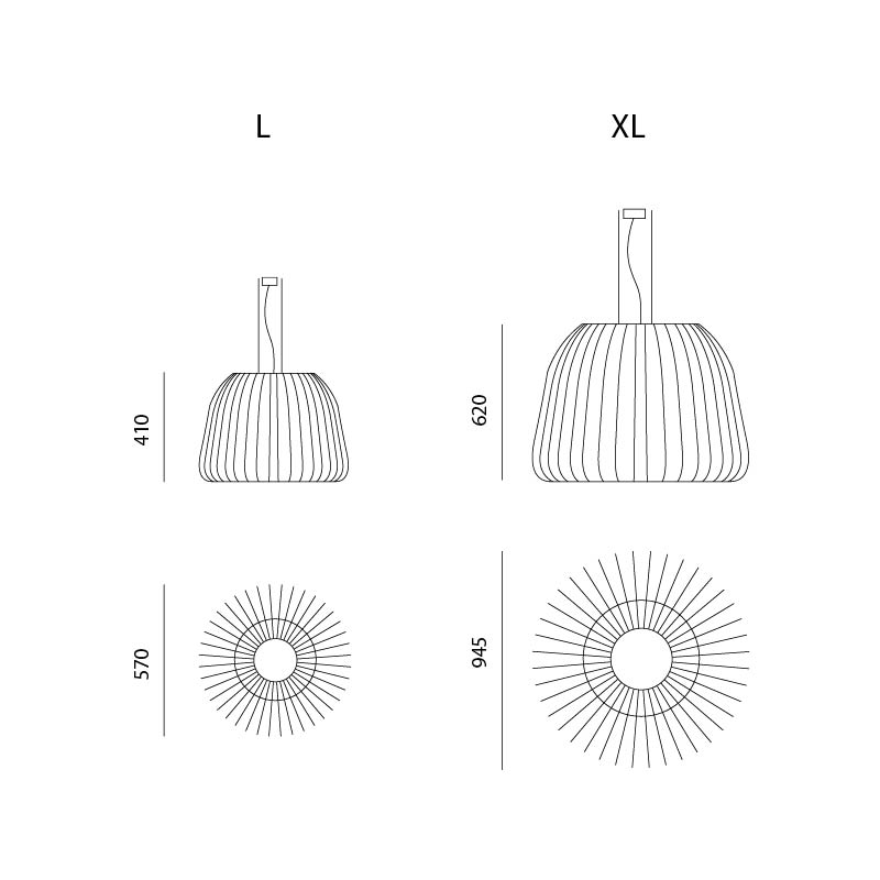 L   74 lm/W, XL (A)   110 lm/W, XL (B)   116 lm/W