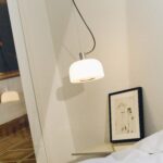 A large-scale table lamp. The dome is composed of a triplex opaline glass diffuser, structured as a sandwich of glass layers, with the white layer inserted between two transparent ones that are blown together simultaneously. The thicknesses vary for each layer. This design has been developed in collaboration with the Flos R&D Department. The use of triplex opaline glass and the large size, which keeps the light source at a distance from the inner surface of the diffuser, allows for uniform, warm, and welcoming lighting, creating a pleasant atmosphere in the space. This version of the Bellhop Glass lamp, with a diameter of 33 cm, rests on a cylindrical aluminum base of 12 cm in diameter and is available in Bright Aluminium, Cioko, and White versions. The materials stand out not only for their aesthetic value but also for their recyclability at the end of their lifecycle, emphasizing Flos’s commitment to sustainability.