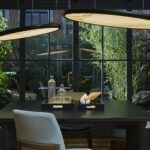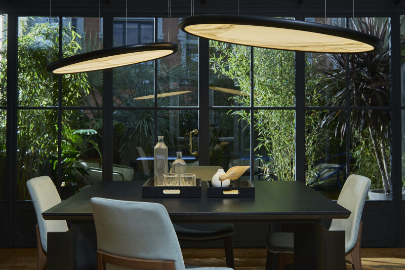 Designed by Massimiliano Raggi, Bogotà is a light element that is fluid, like an object thrown upwards and which remains suspended. The idea of lightness is expressed, using a material that declares its contemporaneity, and which fits into our interiors with decisiveness and elegance. The luminous part, covered in Viennese straw set within a black lacquered oval, has a vintage yet very modern flavour – a style that reminds us of Brazilian and South American modernist interiors of the 1960s and 70s.