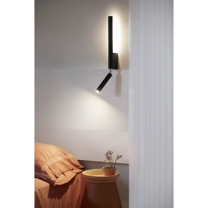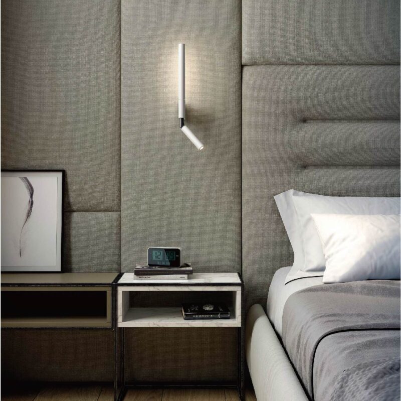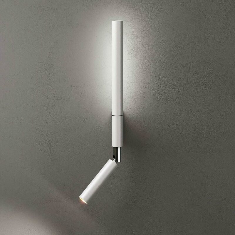 Canut is a linear and discreet wall light that allows a pleasant and undisturbed reading. The sconce consists of a wall light made up of a fixed arm providing indirect light and one adjustable reading arm providing direct light.