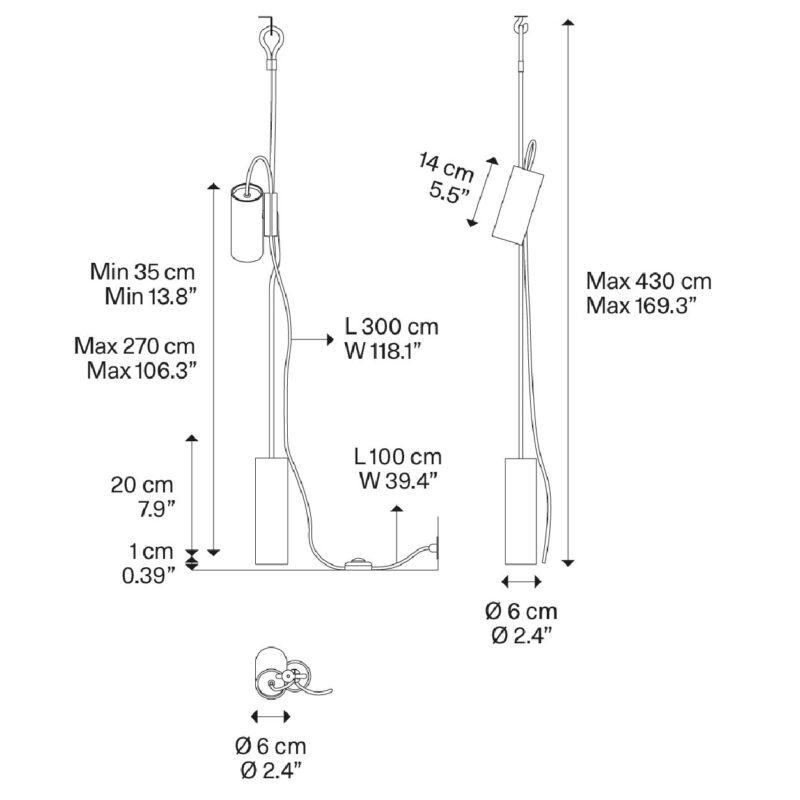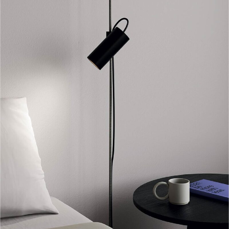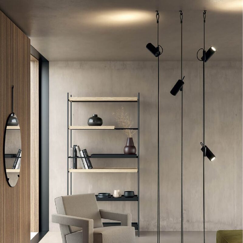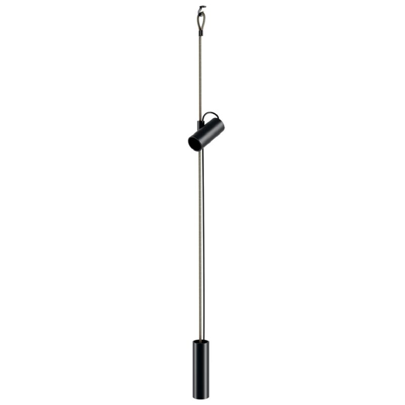 Cima is a “suspended” lamp, conceived as a practical lighting solution that can be rapidly altered to meet the needs of those who use it. Cima’s hallmark is a ceiling-to-floor rope, a graphic and functional element with an eyelet that allows it to be fixed to the ceiling. An injection moulded polymer joint slides vertically along the rope and locks at any desired point. The lamp body resting on the joint swivels to bring light where it is needed. The counterweight enables to readjust any excess of rope for lower ceilings. The switch button is placed on the power cord for easy use.