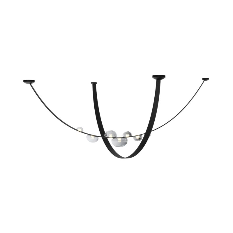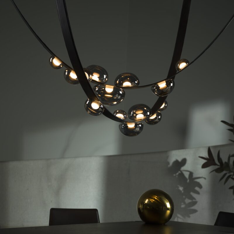 Designed by Boris Klimek, the Dew Drops Collection was created to capture the fleeting beauty of morning dew, clinging to blades of grass. Dew drops sparkling on a thin blade of grass expose the elemental beauty of nature that continues to fascinate us. The intimately familiar, yet still charming, shape of dew drops inspired this collection with its precise details. Lit by an internal light source offering an exceptional esthetic experience, the crystal objects, with hints of iridescence, adhere tightly to hand-sewn bands from an innovative material or high-quality leather.