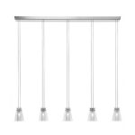 The Cubetto pendant lamp with five light fittings has transparent crystal, black and white diffusers. The light produced is halogen or LED and extensively enhances the space around it. The lamp can be installed in many areas of the private home, in the meeting room of the workplace or in the bar of a restaurant.