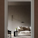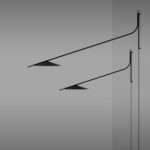 Glifo is a projecting wall lamp. The precision and minimalism of the lamp are inspired by typographic characters, in this case glyphs, which by their symbolic nature are stylish and simple. Two metal lines define the space: a vertical element, the fulcrum of the rotation, and an oblique element that surrounds the opening
