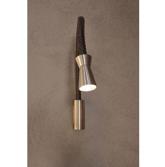 An innovative reading lamp, born from the idea of a portable and luxurious product to meet specific space and installation needs; this makes it suitable for contexts such as yachts and superyachts, historic buildings, or exclusive boutique stores. The head recalls a cocktail jigger (as the name G+T, or gin & tonic, suggests), and the arm is in brass covered with braided leather.
