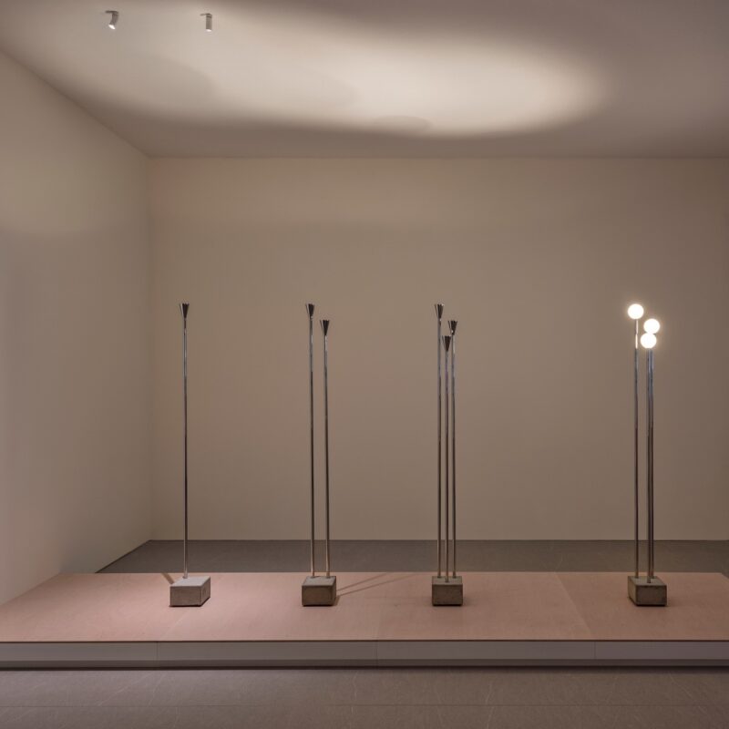 An original reinterpretation of the torch, Jam Session blends rigorous aesthetics with a touch of irony. Drawing on multiple archetypal references, the concrete base supports one to three luminous stems, each crowned by a glass sphere or a flute-shaped diffuser. Elegant yet versatile, it was conceived as a ‘super-candle’ with a gentle glow ideal for refined interiors.