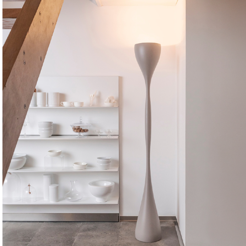 The Jazz floor lamp is a Diego Fortunato design characterised by its organic and pure forms. The Jazz lamp provides an indirect light that helps create intimate and inviting spaces. The Jazz floor lamp is provided with a dimmer switch integrated with its cable.
