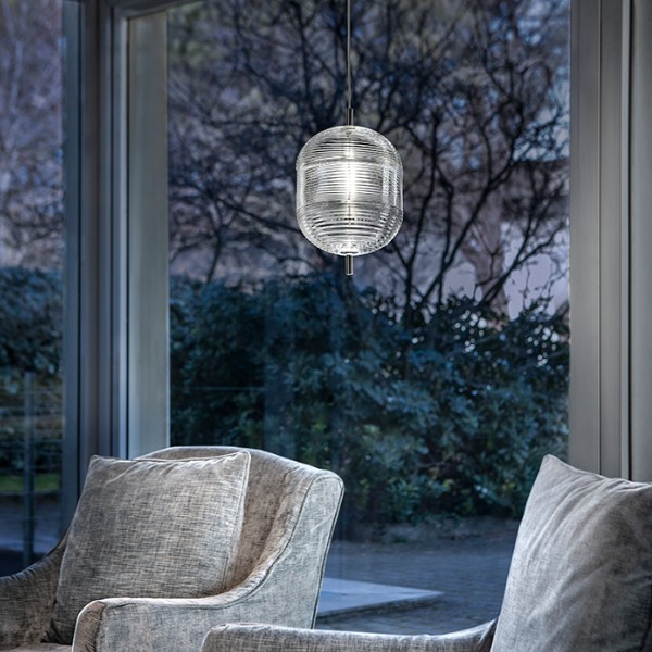 The Jefferson suspension lamp designed by Luca Nichetto is reminiscent of music and iconic images in psychedelic works of art from the 1960s. The vortex motif decorating the diffuser is embellished by the timeless classicism of Bohemian crystal, which diffuses evocative atmospheres of light. Dynamic in both its many sizes and multiple compositions, Jefferson’s elegance keeps up with the excellent performance of LED interior lighting.