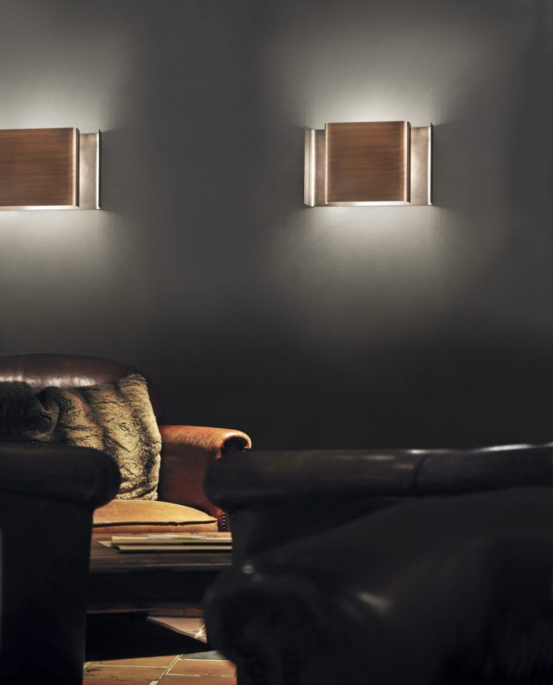 Alalunga wall lamp features LED light source or compact fluorescent light bulbs.