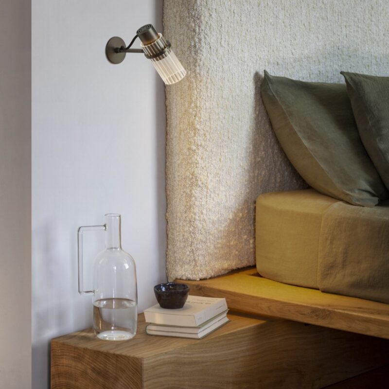 In a world of spotlights with a masculine feel, Lei emerges: a system of technical spotslights with a crystalline and elegant aesthetic, based on curved elements that evoke the grace of the feminine universe, such as sartorial pleats and the sophisticated workmanship of precious perfume bottles. Available in matte black, brass, nickel and titanium finishes with clear and frosted glass or smoked, bottle green and red available on request. Lei is destined to capture every eye that passes, with its brilliant aesthetic presence.