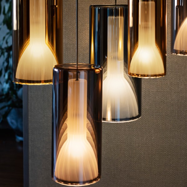 A mutable object that changes with the light. When off, Lit looks like a suspended sculpture, a minimal tube made precious by the reflections that play on the glass. When lit, the lamp reveals a bright, warm and gentle soul.