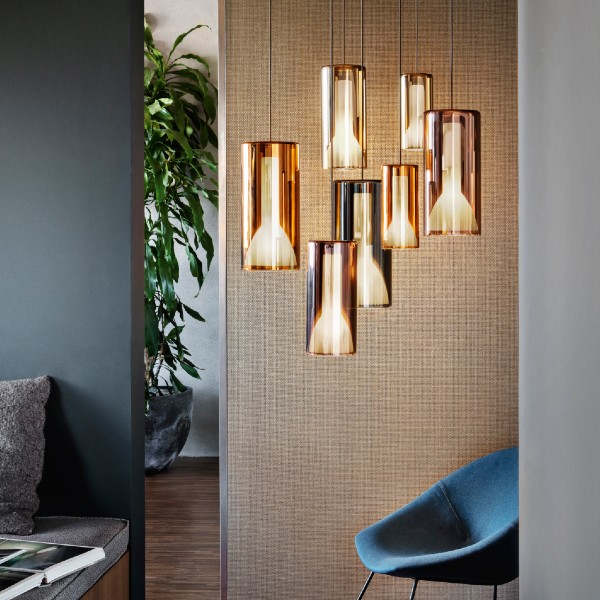 A mutable object that changes with the light. When off, Lit looks like a suspended sculpture, a minimal tube made precious by the reflections that play on the glass. When lit, the lamp reveals a bright, warm and gentle soul.