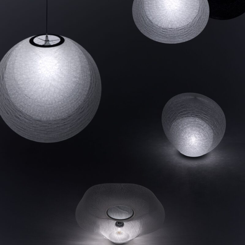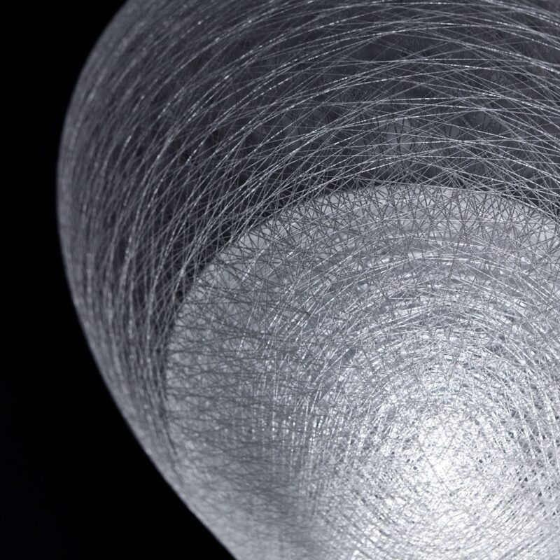 The spun thread design of this delicate, fiberglass creation is reminiscent of a cocoon. It lets pit a soft light that is enhanced by the double and triple- shells. This is designed by world-renowned Japanese architect, Toyo Ito. The MAYUHANA® includes pendant, floor, and table lamps with a variety of shapes available in two colors.