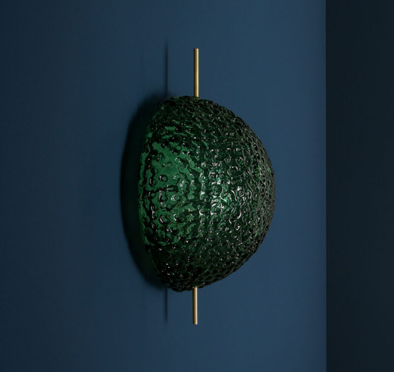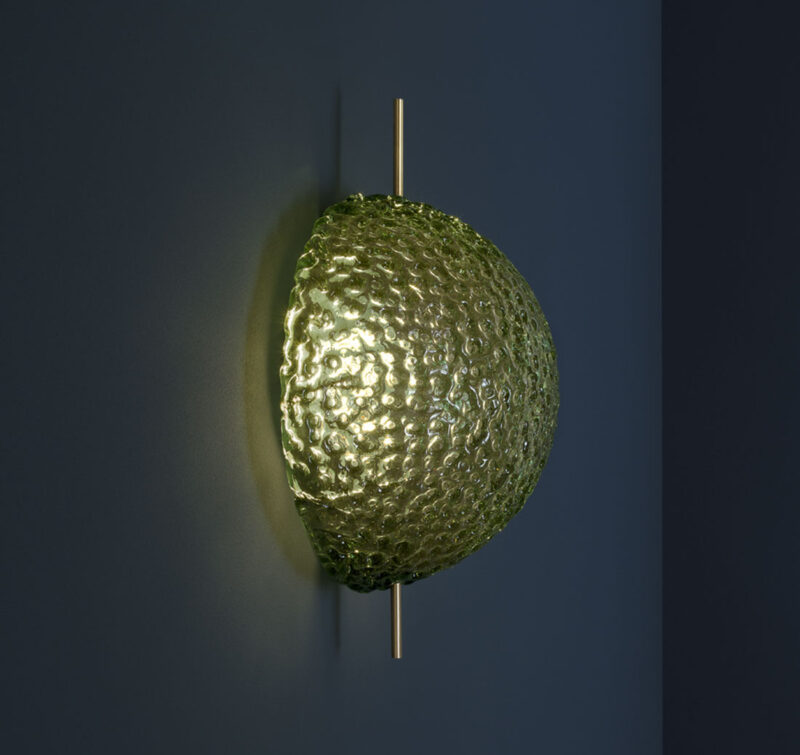 Glass plays a starring role in this collection; glass which, before being completely cooled, is shaped by hand.