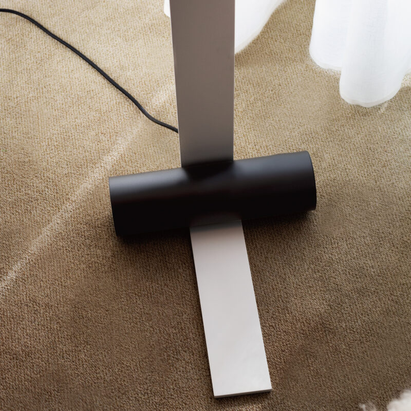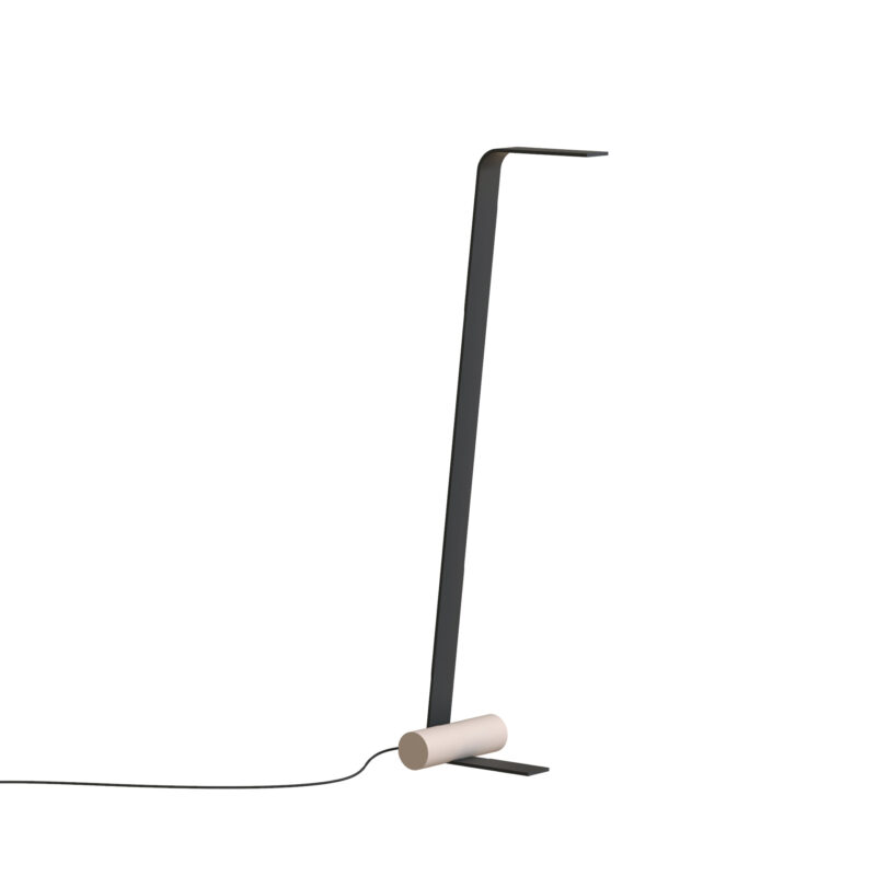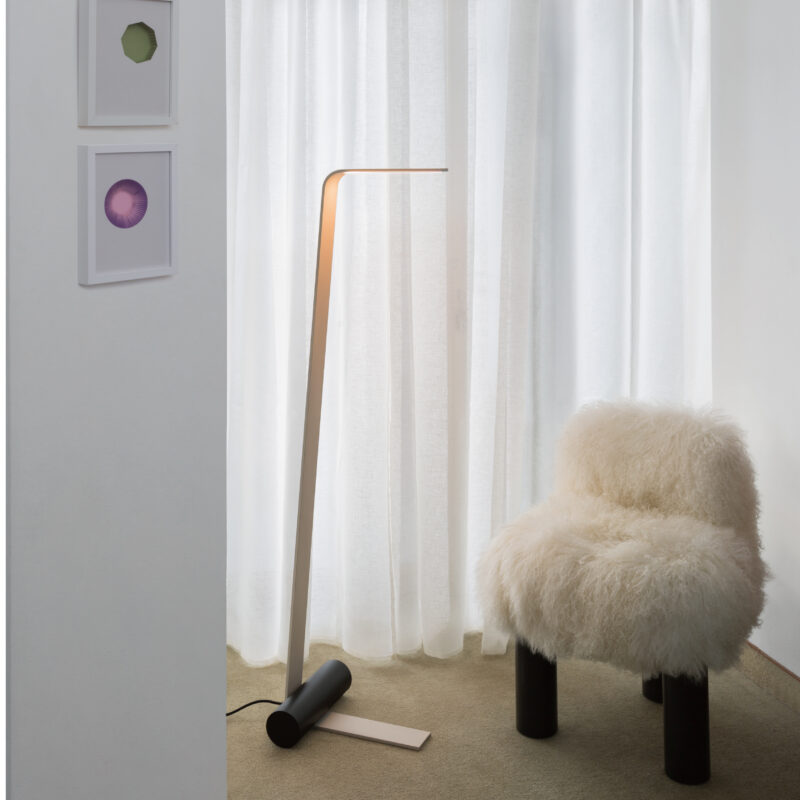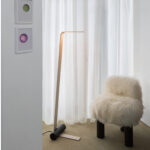 The Nastro collection of suspension, wall, floor and table lamps designed by Studiopepe sees an epoxy powder coated aluminum band structure accompanied by a cylindric weight that counterbalances its flexuosity, in a refined visual balance. The light source consists of a dimmable LED strip; the cylinders are available in epoxy powder coated metal, in wood, in brushed brass and in raw concrete.