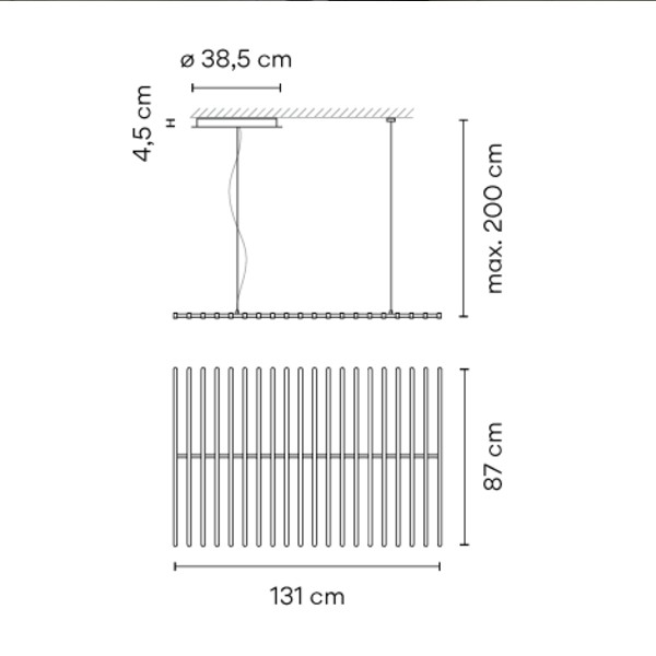 The Rhythm horizontal lights are an Arik Levy design. Vibia produces multiple versions of this collection of varying dimensions as well as number and size of light sticks. The Rhythm pendant light provides a down-light type illumination. Its installation can be surface mounted or built-in with two finishes offered by Vibia: matt lacquered off-white and matt lacquered dark brown. Each of the light sticks forming part of the Rhythm horizontal pendant light feature a LED source.