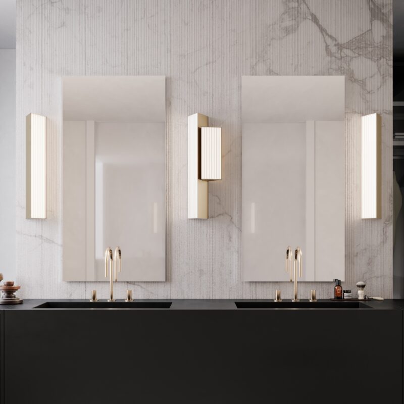 Precious simplicity. Triangular elements with pure, essential lines, which emanate an atmospheric light while being functional. Light takes the leading role, thanks to the ribbed diffuser, chosen specifically to produce unique plays of illumination in various contexts.