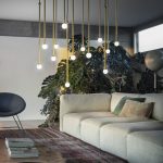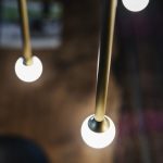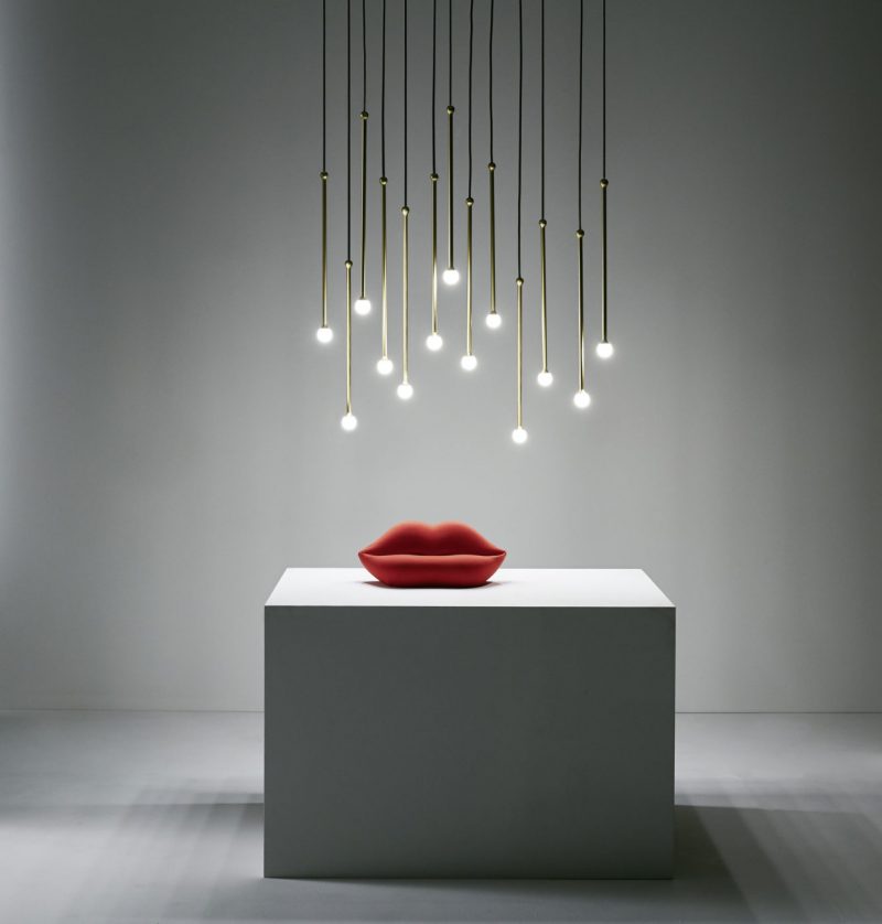 Thin stems in precious metallic finishes create evocative harmonies of light.