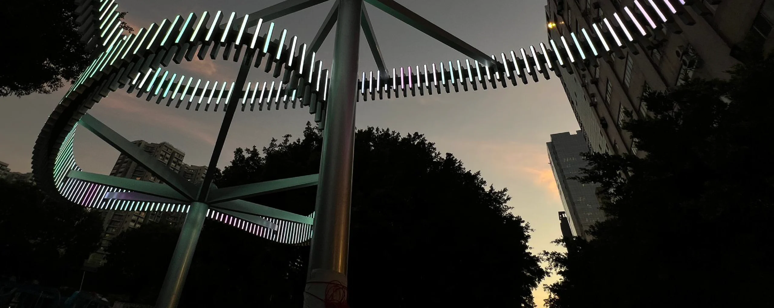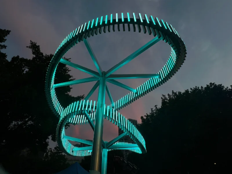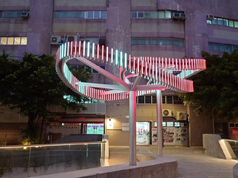 Among the highlights is a striking tree-shaped lighting installation, custom-designed by Zodiac Lighting, inspired by floating water plants. This piece beautifully combines the elegance of floating plants with the majesty of trees, creating a vivid scene. As night falls, the LED lights within the installation dance with preset colour changes, resembling stars shimmering on the water’s surface, adding a dreamy hue to the night sky of Tsui Ping River. This is the result of our team’s hard work, aimed at providing visitors with a visual feast.