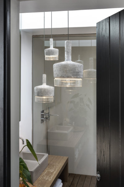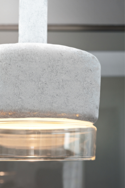 Acorn, born to illuminate outdoor spaces yet protagonist indoors. The hand trowelled concrete merges with the lightness of glass leaks a warm, enveloping light
