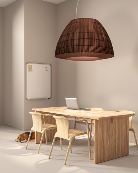 Bell brings together an important aesthetic identity, excellent lighting performance and acoustic properties in one. Thanks to its pongé fabric, is both flame-retardant and acoustic, allows Bell to reduce the noise as far as 59%.