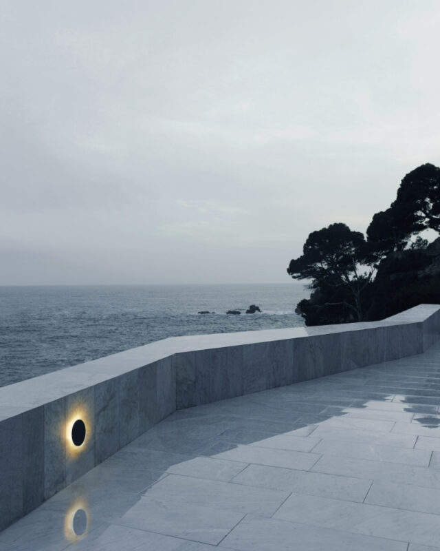 Flos Camouflage 是由 Piero Lissoni 設計的一款簡潔的戶外壁燈與天花燈,具備 IP65 防護等級,能有效防塵防水,非常適合安裝於花園、露臺或建築外牆。它的獨特之處在於採用了石材質感面板,如 Basaltina 火山岩或奶油色的 Crema d’Orcia 石面,讓燈具能自然融入建築表面。關燈時低調,開燈時則散發柔和均勻的光線,兼具耐用性與建築美感。