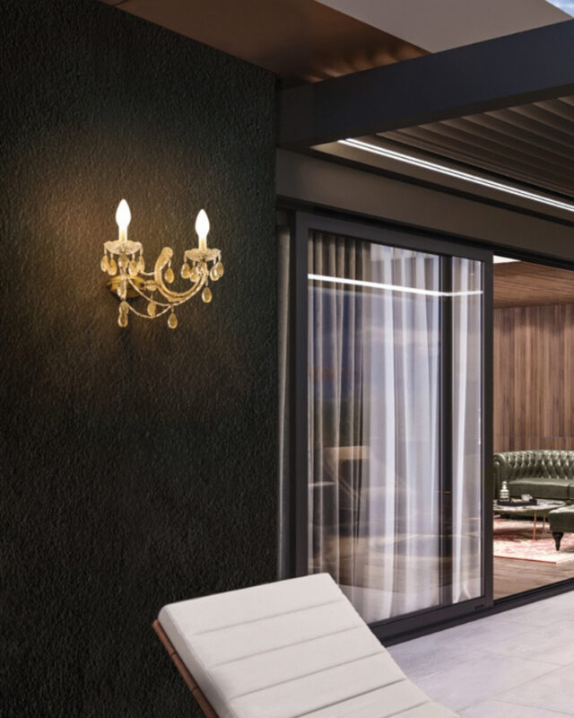 是一款優雅的戶外壁燈,融合了經典裝飾風格與先進耐用性。它具備 IP66 防護等級,能有效防塵並抵禦強力水柱,在嚴苛的戶外環境中依然保持穩定的性能。燈具採用了聚碳酸酯與水晶材質製成,輕巧卻堅固,能抵抗紫外線、濕氣與溫度變化,是露臺、花園或戶外款待空間中兼具美感與耐用性的理想選擇。