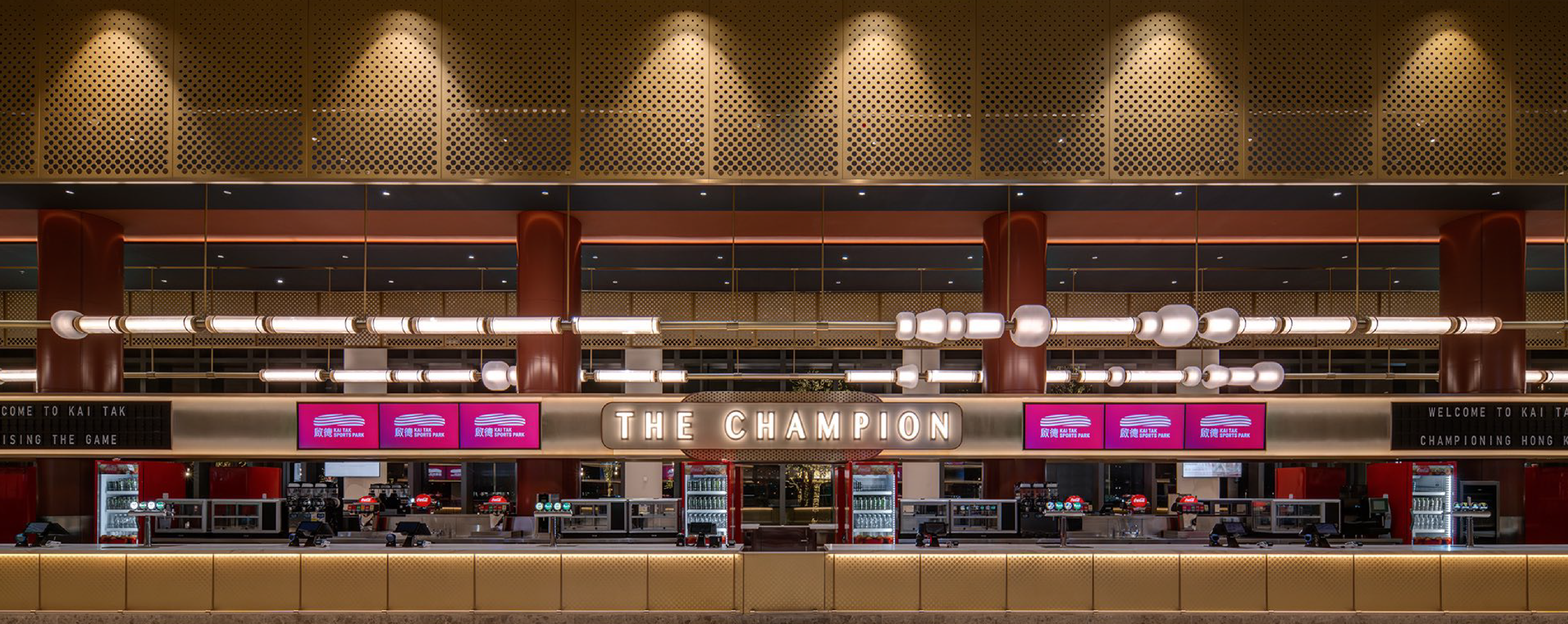 在這座充滿活力的體育園內,位於啟德主場館二樓東大廳的 The Champion酒吧 是絕不能錯過的亮點。作為亞洲最長的運動酒吧之一,The Champion擁有100米長的雙面吧枱,可容納逾1,500名顧客。