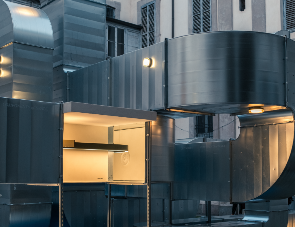 Deltalight於Palazzo Litta展出了“Components of Space”,這是一座利用通風管道打造的幾何裝置,探索光綫、形態與質感的交互關係。其設計旨在引發關於光綫在塑造空間中的重要對話。
