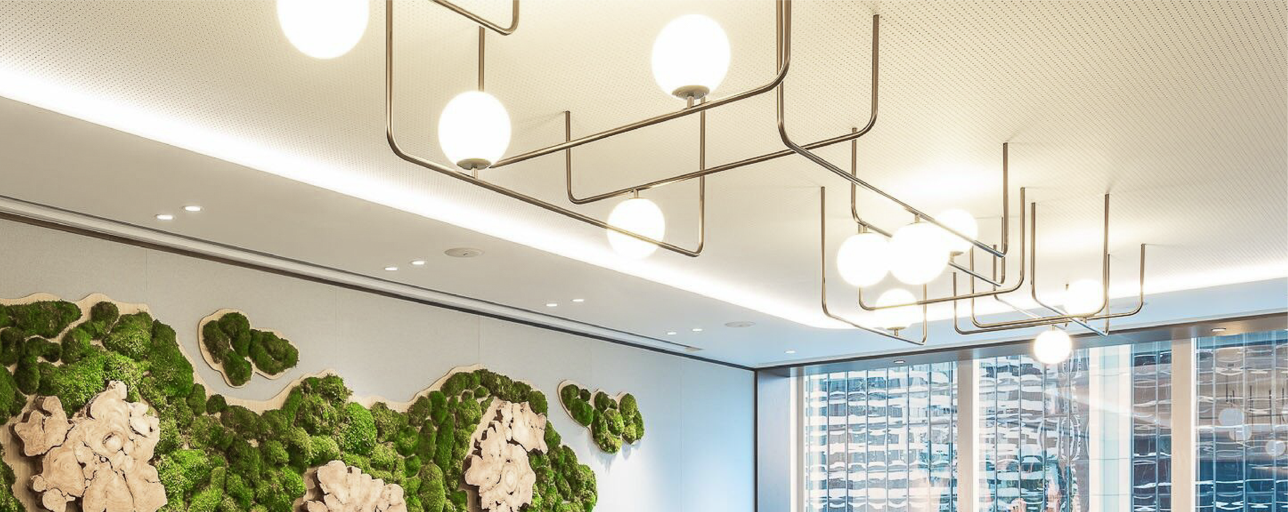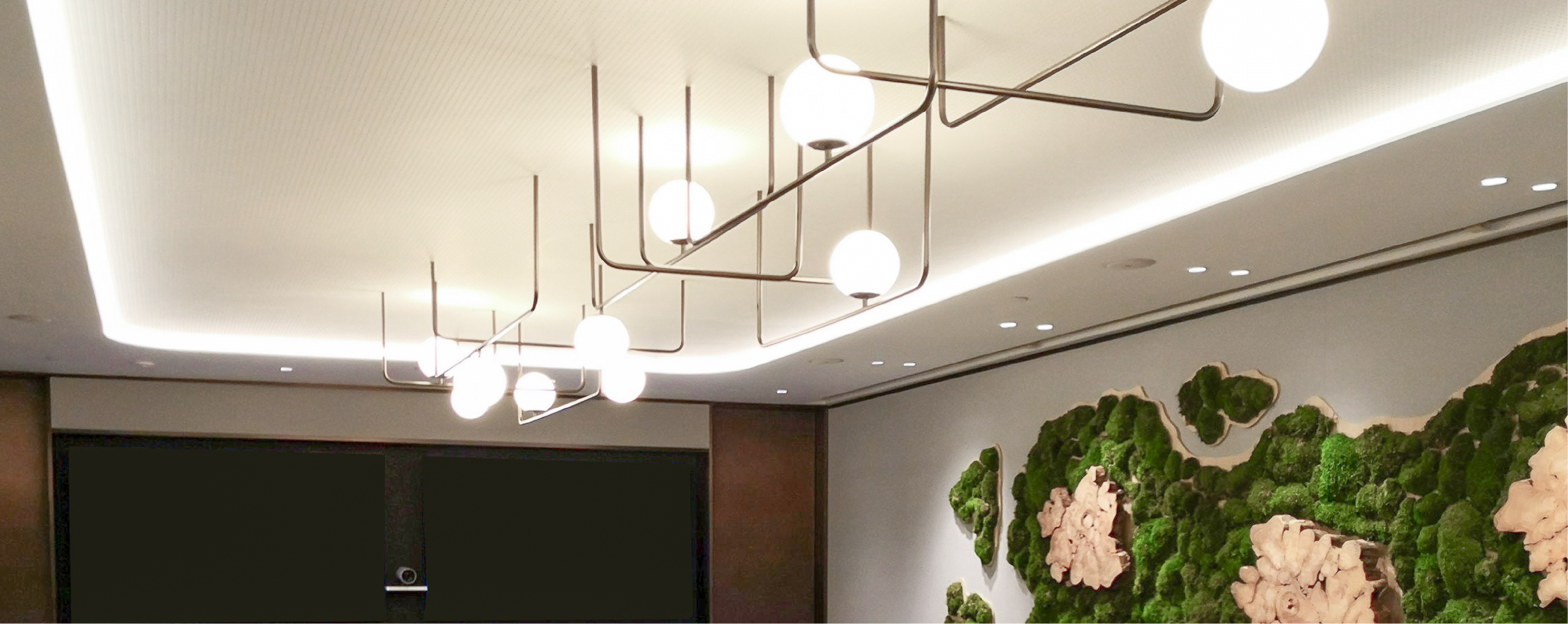 我們特別為這間辦公室的會議室設計並製作了一盞訂製的天花燈。這件燈具不僅以量身定制的照明效果提升了空間氛圍,還展現了工作場所的獨特特質,營造出專業而又舒適的協作環境。