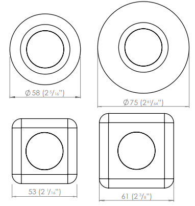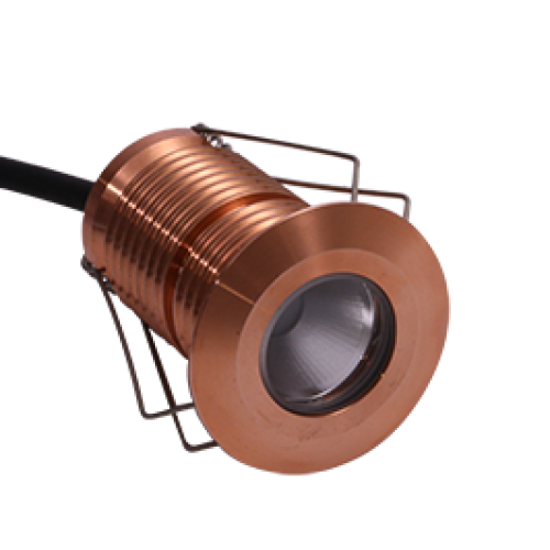 The Modux Two Round Recessed Plug is easily installed. Mark out the luminaire position and have the wiring terminated at the location ready to receive the fixture with suitable connectors. Using a 41mm or 15/8” holesaw, cut a neat hole accurately in the surface where the fixture is to be mounted. Route the wiring out of the hole and electrically terminate the product. Fold the spring wings back against the body and inset into the hole. The flange will sit flush with the wall when fully inserted.