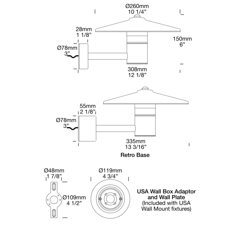 This fitting is the wall-mountable version of the Tier Light. It provides 360 degree illumination on a horizontal plane without projecting vertical light. It is ideal for lighting areas like porches and entrance ways.