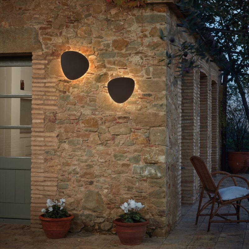 The Tria are one of the most beautiful products and receives much positive response from our catalog. For this reason we decided to take them a little further so as to now included them within our gardens, terraces and open spaces, both public or private. Their organic forms, like worn out river stones, make them a singular and original object. As opposed to the Tria indoor, the outdoor cannot be installed in a modular way due to its IP-66 protection. They are individual luminaires. They are available in two sizes and two finishes, graphite brown aluminum sheet and teak wood.