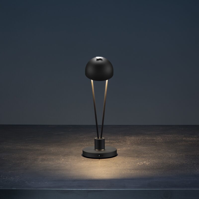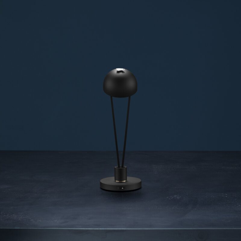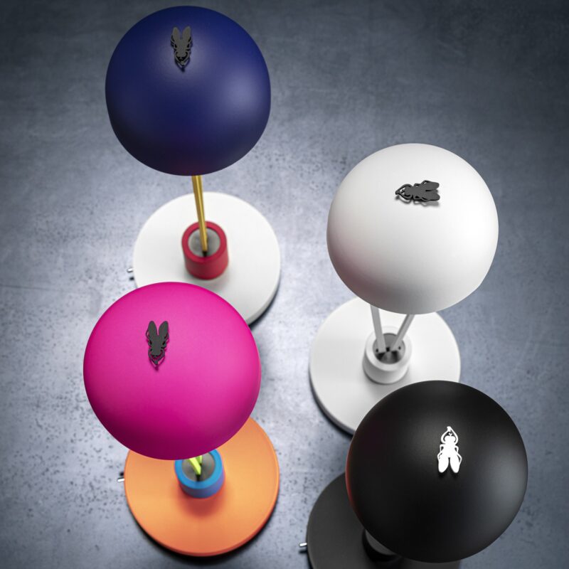 Colour was used as a message of rebirth and joy. Today, that colour is back.” Blue, yellow and red join fluo shades of pink, yellow, blue and orange, colouring hemispheres, rods, bases and surprising details that bring a lively touch to settings. The hemisphere is the hallmark feature of the new Ale range, composed of four different models: BE T, C, BIG and W, characterised by the unexpected detail of the fly resting on the hemisphere. Ale BE T is a wireless, battery-operated table lamp, so it can be moved around any setting.