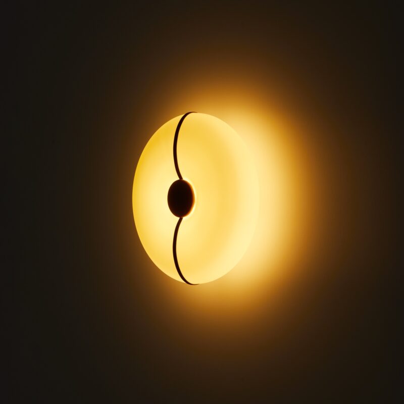 Inspired by the nautical world, Bolina, designed by Fabio Fantolino, translates the balance between lightness and stability into a timeless, essential design. Its name recalls the sailing course that allows a boat to rise against the wind — a metaphor for movement and harmony. The luminous body, crafted in satin amber glass with caramel nubuck leather straps or in satin white glass with light beige leather, shapes soft, welcoming volumes, like a lifebuoy embracing the light. Available in two sizes (Ø 35 and Ø 50 cm) and in pendant, wall, table, and ceiling versions, Bolina casts a uniform, enveloping glow, bringing sophistication and contemporary charm to any interior.
