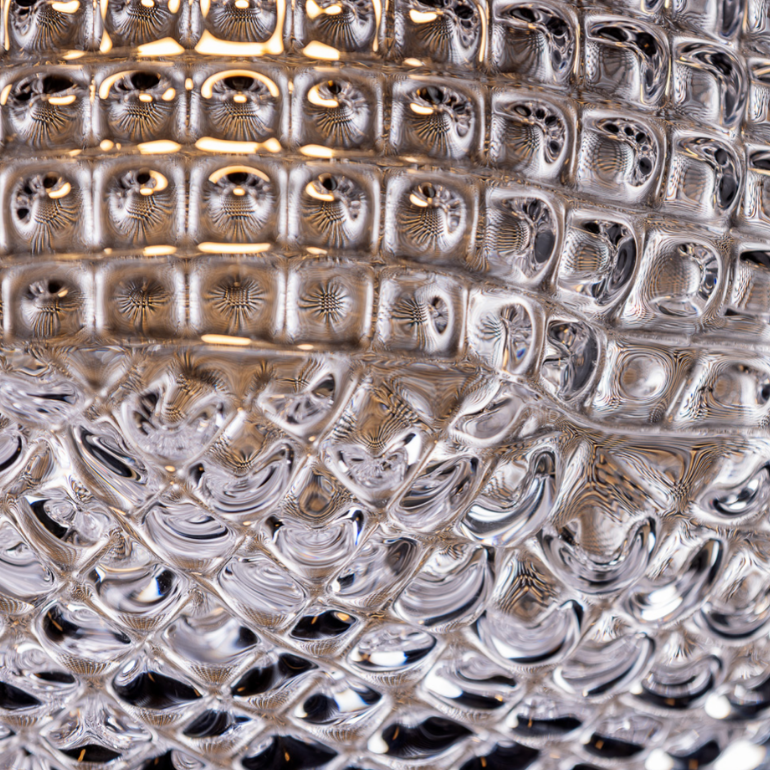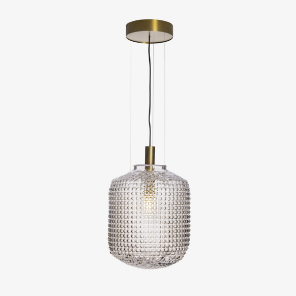 Leading Czech designers Henry Wielgus and Jan Plecháè explored the human psyche when creating the vision for Hidden Light. They equated the essence of light to humanity’s inner spark; a brightness that can free us from the cage of society’s expectations. They materialized this metaphor into pendant lighting and a floor lamp. Large glass pieces were blown into a cage-like metal form, yielding a tremendous, yet intricate mass of glass blocks to build a solid body. Whether in clusters, or as a single focal point, Hidden Light creates a humbling spatial experience in which onlookers can reflect on their own unique radiance.
