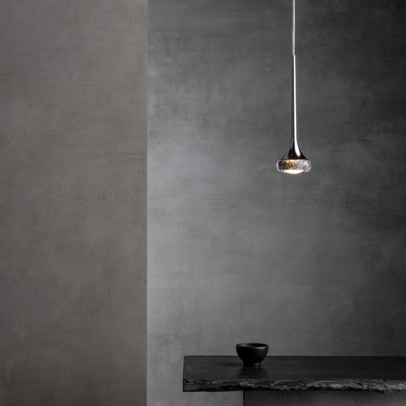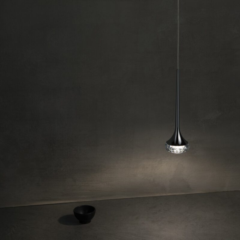 Multiple reflections and iridiscent symmetries go through the matter to generate new forms. The clarity of aluminum meets the facets of the crystal in a kaleidoscopic game of unpredictable brilliance.