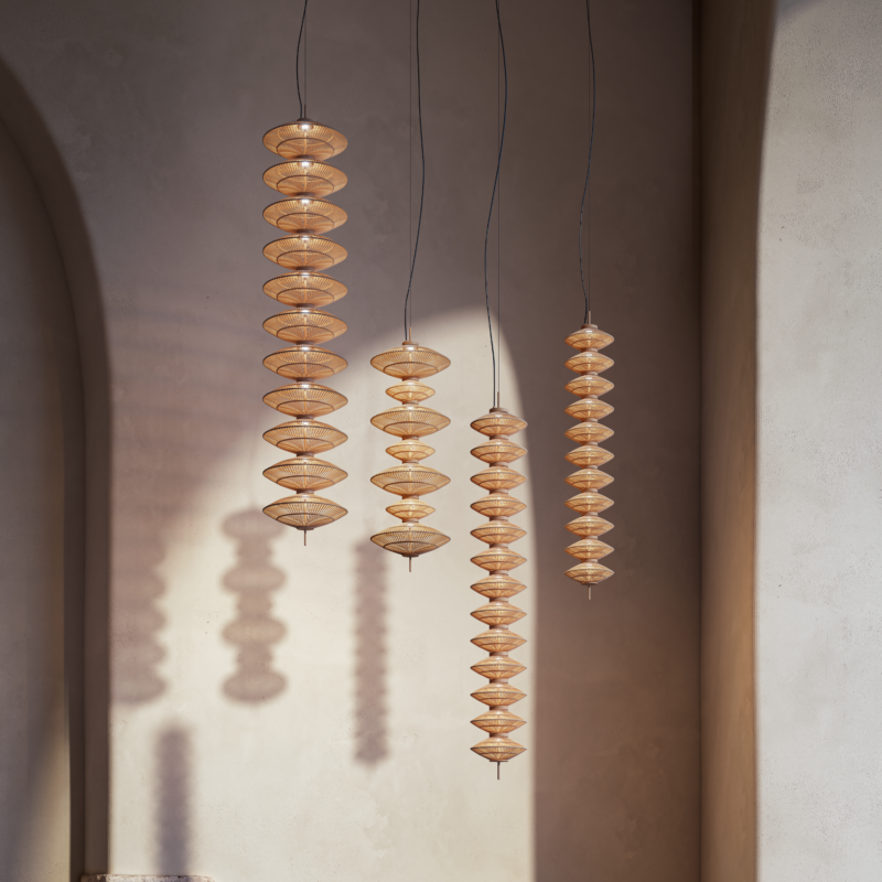Yuyun is a feminine name of Asian origin. This collection was born from the need to create vertical lighting elements, helping illuminate spaces with strong aesthetic impact, highlighting double-height areas, stairwells, or special corners.