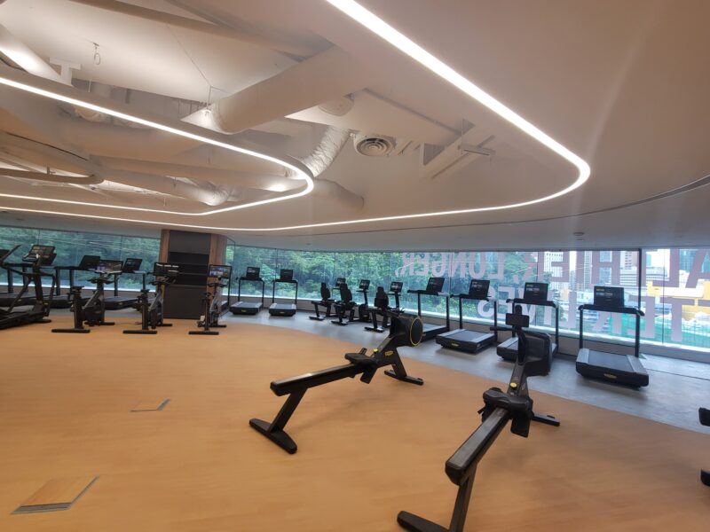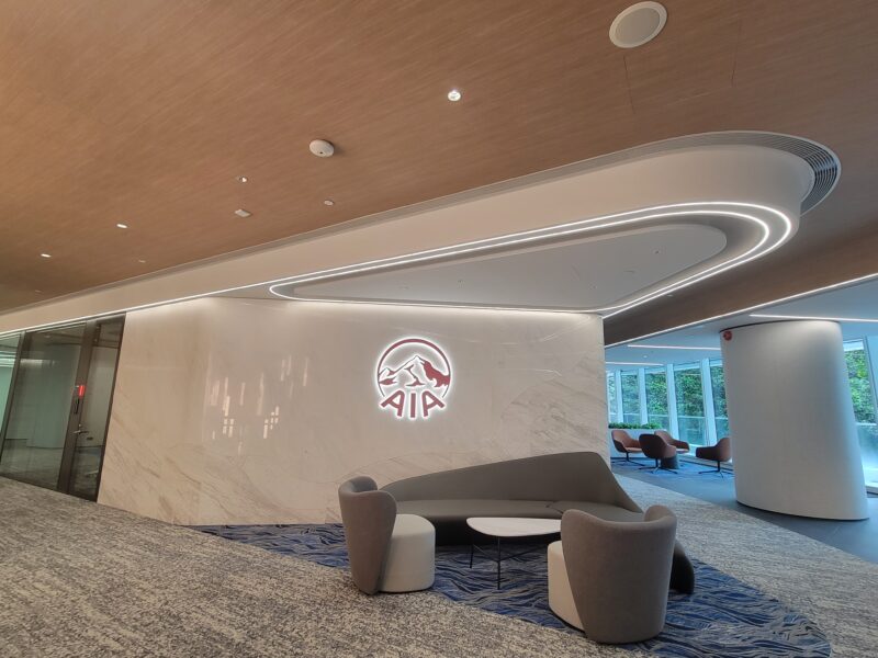 The AIA Building is located at 1 Stubbs Road, Wan Chai, Hong Kong. It is AIA Group’s Headquarters and Hong Kong’s first Urban Campus. The building has a gross floor area of approximately 23,600 square metre and consists of 22 floors including parking and service floors. First corporate headquarters in Hong Kong to feature a 200-metre indoor, air-conditioned running track that wraps around the building’s perimeter