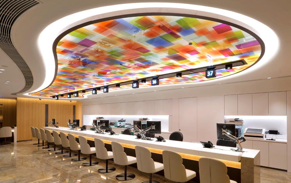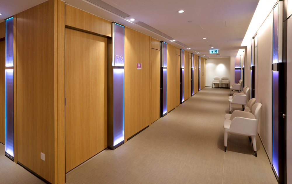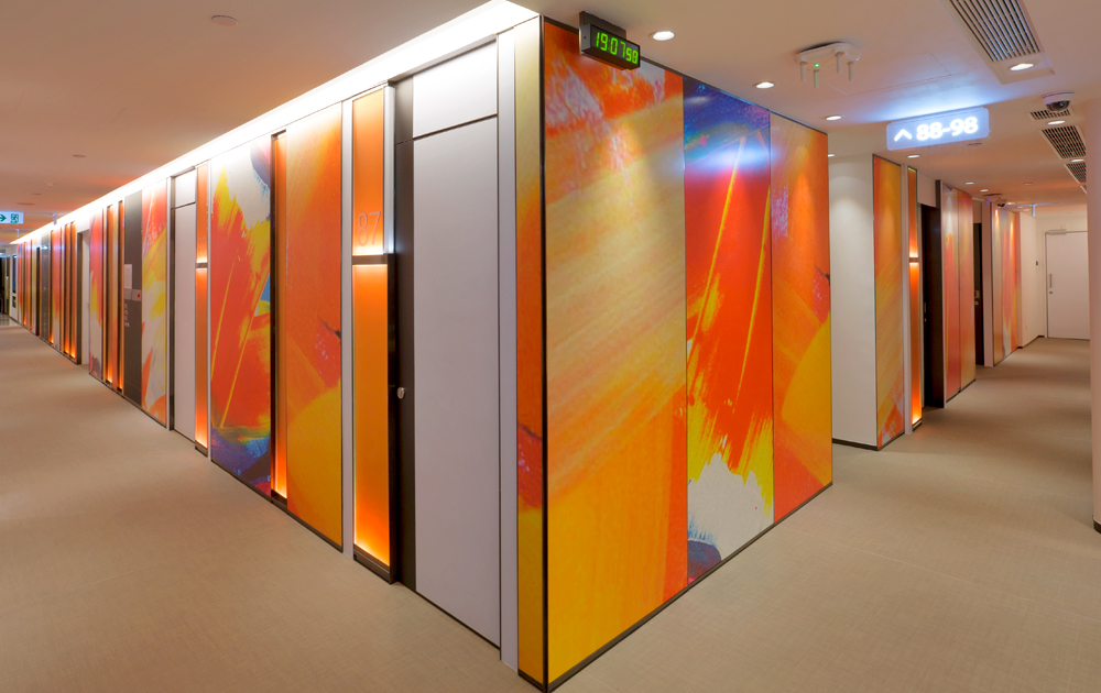 Occupying one half of the 21st Floor at One Pacific Place in Admiralty, the Hong Kong Sanatorium & Hospital’s new Ophthalmology Clinic uses boldly coloured supergraphics as a primary way-finding device.