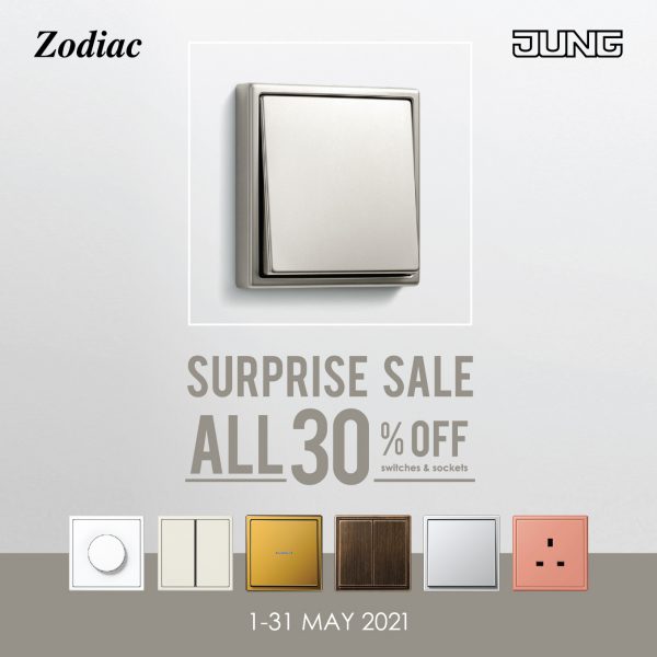 Get ready for the best deal you have ever seen! Zodiac Lighting showrooms are now offering a “Surprise Sale” (1/5 – 31/5) that saves you 30% on all JUNG switches and sockets. Grab this chance to elevate your space with German crafted switches and sockets.