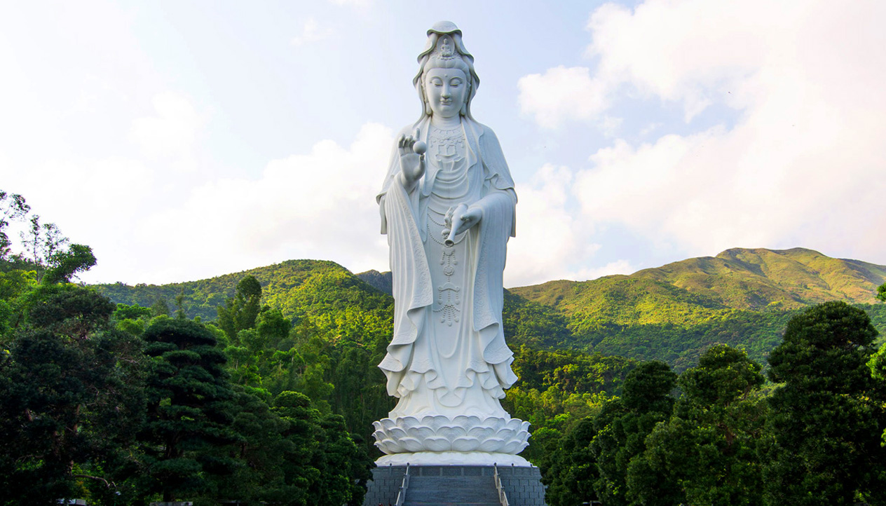 Tsz Shan Monastery is located on a hilly site with an expansive sea view to the front. The core of the monastery consists of three main buildings placed along a central axis. Each building and associated courtyard is placed on platforms rising up the hill, well defined with surrounding corridors. On another axis branching off from the Grand Courtyard, devotees are led into the presence of the colossal image of Guan Yin, passing the Universal Gate.